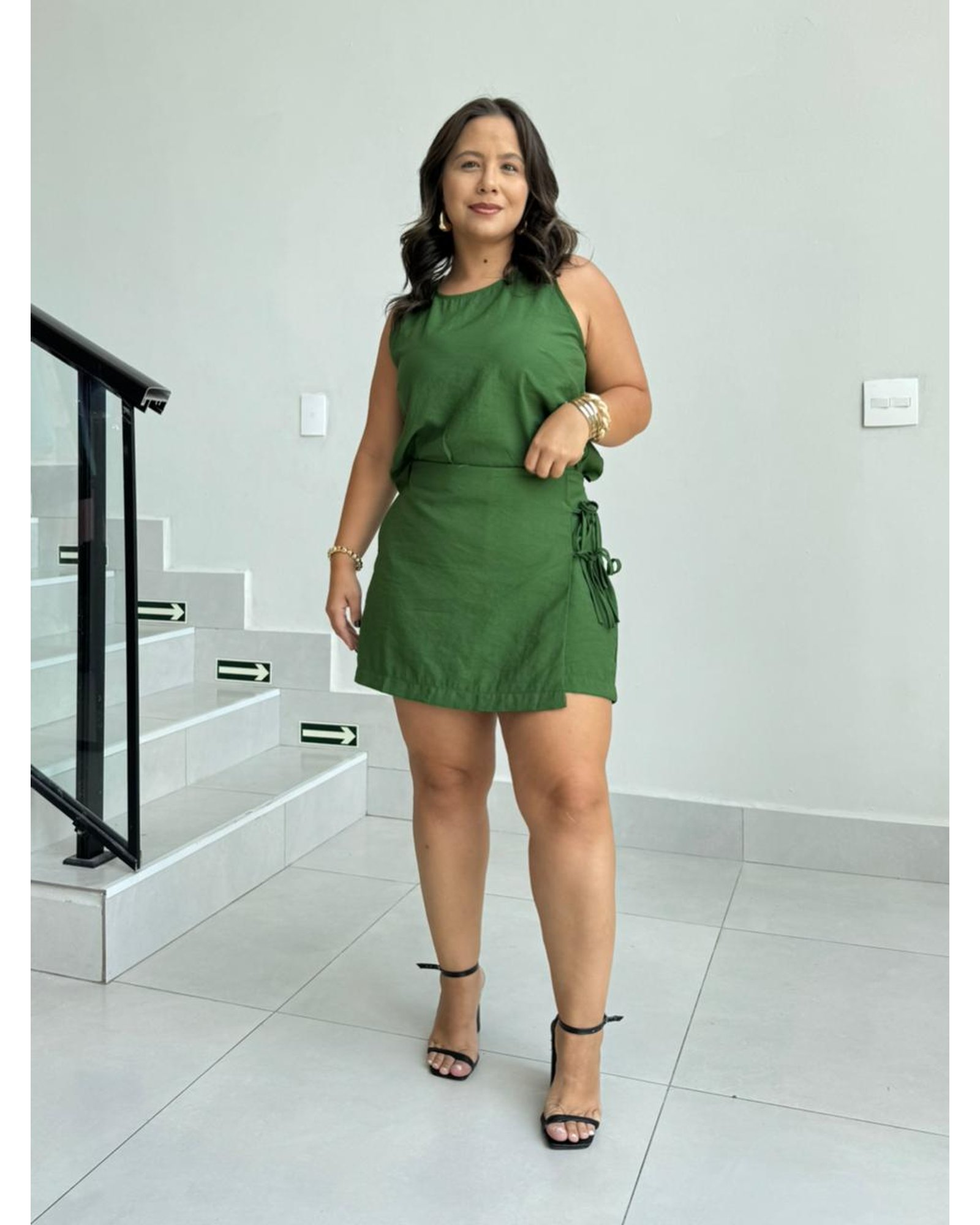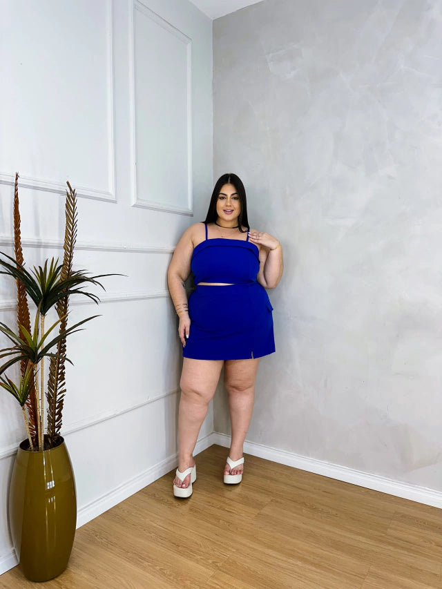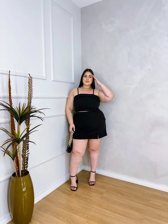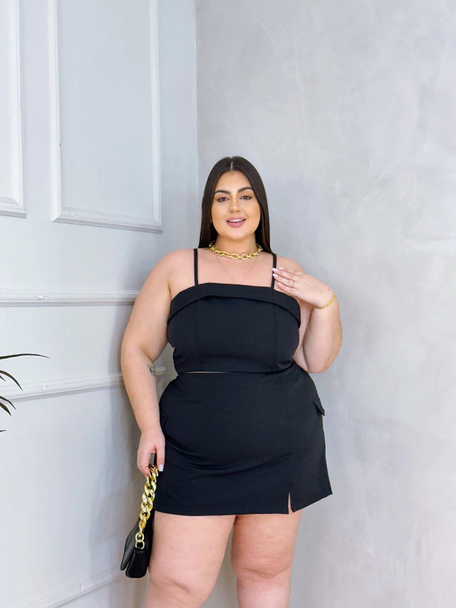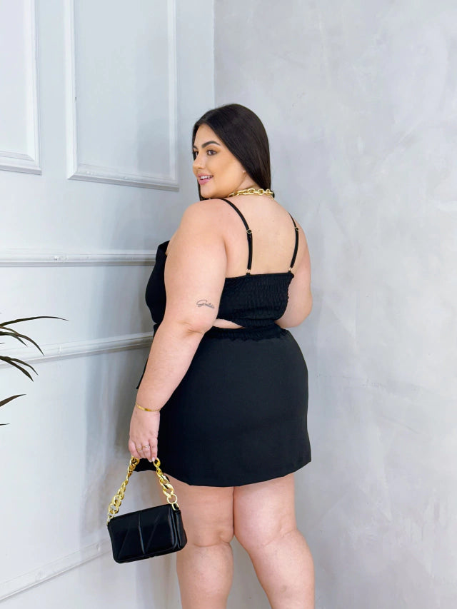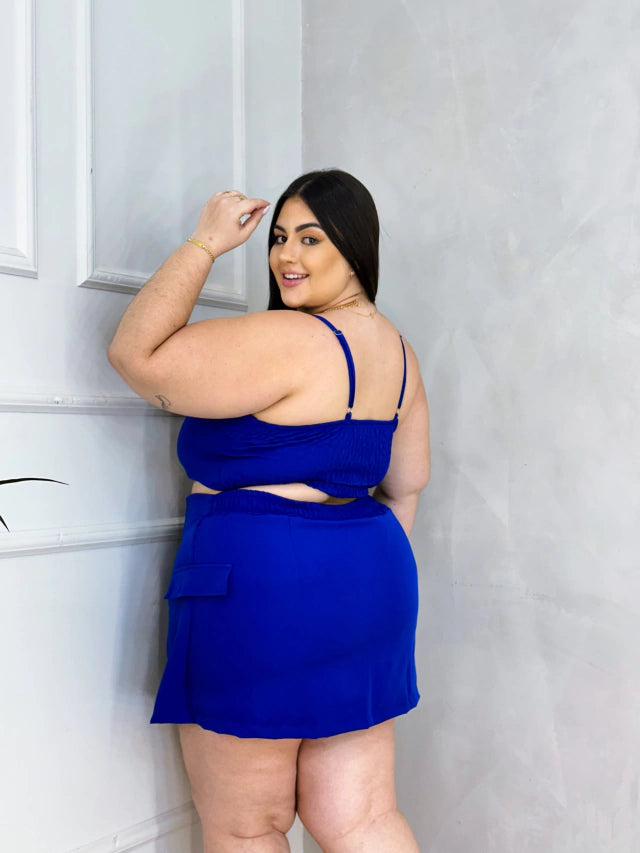 Conjunto Nula - Cropped amarra??es + Short com cinto